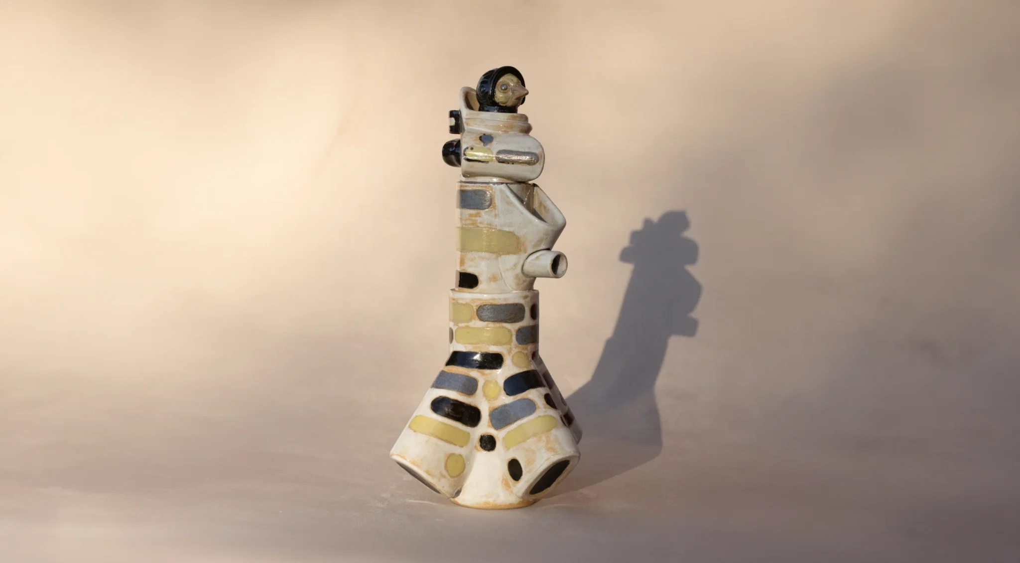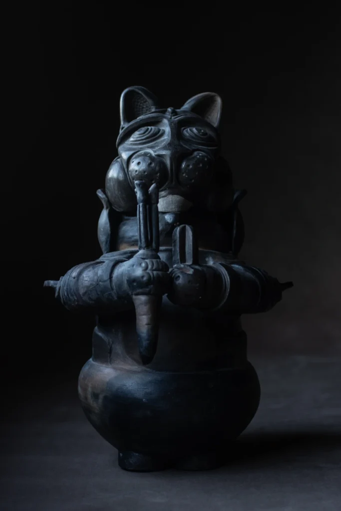 Trajes espaciales, animales en peligro de extinción y utilería envuelven el camino incipiente pero prometedor del ceramista Andrés Sepúlveda (Antofagasta, 1991). Creció en Pudahuel y su primer acercamiento a la cerámica fue en su infancia, en la escuela del barrio, cuando les dieron greda para modelar en clases. “Inspirado por la película La máscara, moldeé una réplica con la esperanza de que tuviera algún poder especial. Sin embargo, no volví a pensar en la cerámica como material de creación hasta muchos años después”.