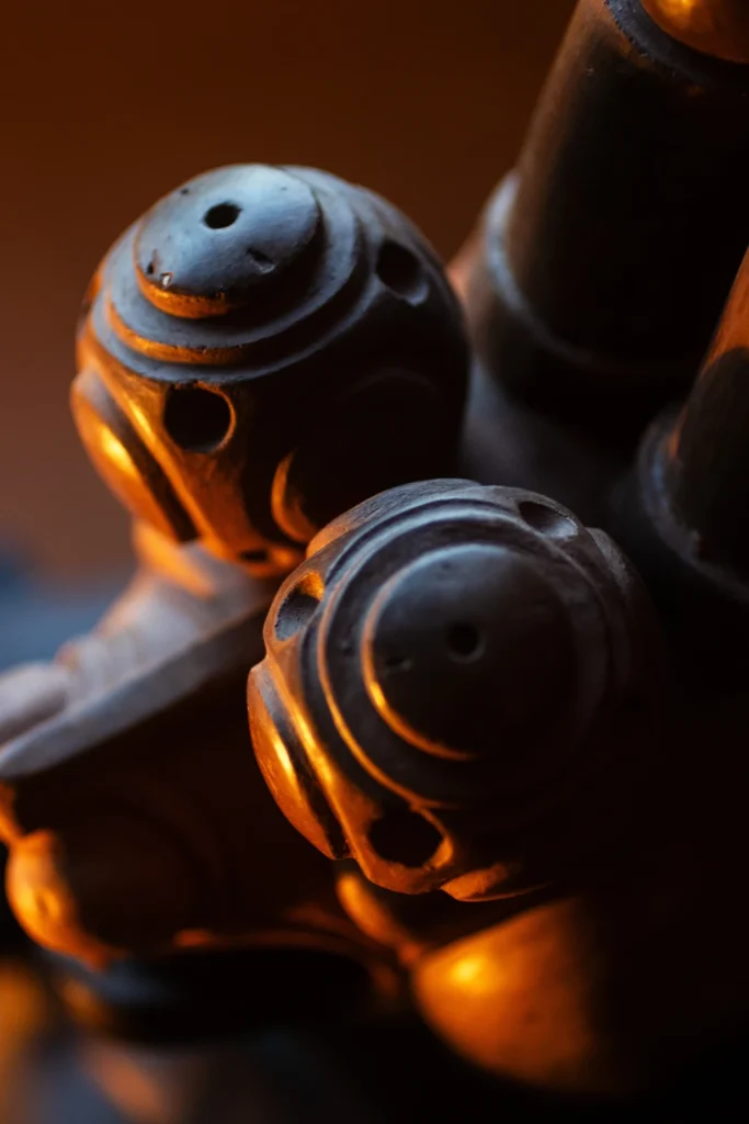 Andrés recuerda que conoció “la quena” gracias a su padre y su tío. Se trata de un instrumento andino sumamente antiguo, de viento y similar a una flauta. Cuando su tío falleció, Andrés comenzó a aprender a tocarla, así como a reparar estos objetos. Rápidamente, llevó la anatomía de estos objetos a la cerámica, comenzando este proceso en abril del año pasado y llevándolo a una serie de tazas de cerámica.