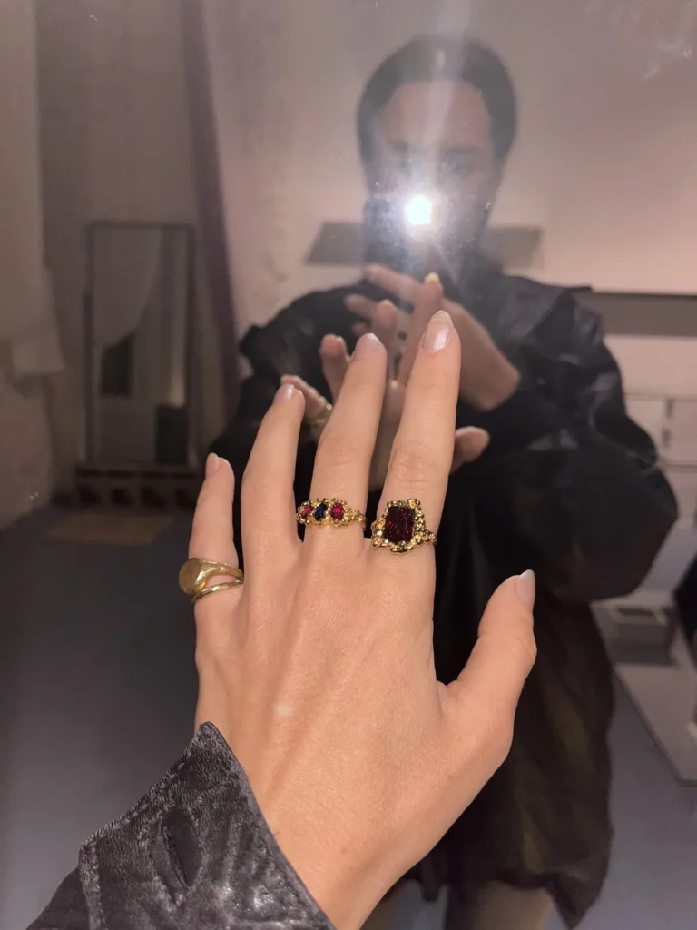 Sin embargo, no sería hasta la pandemia que esa pulsión creativa se haría realidad, cuando la diseñadora viajó a Chile y quedó atrapada en el país debido a las diferentes restricciones de movilización. Un contexto ‘ideal’ que le permitió darse el tiempo para desarrollar las primeras piezas que definirían luego el estilo de su marca homónima. “El proceso de aprendizaje fue muy intuitivo, de mucho ensayo y error, me apoyé en vídeos de YouTube, en libros y hablando con la misma comunidad de joyeros para resolver mis dudas”.
